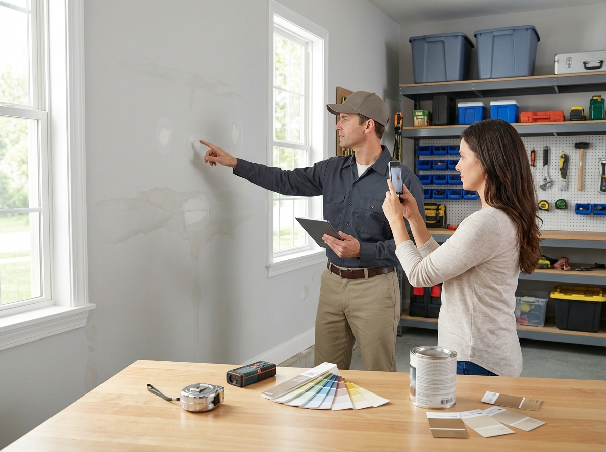 Primer needs are huge in garages. Water stains, smoke staining, tannins from wood, raw drywall, or patched areas can all require primer. Primer is not upselling. It is what helps paint stick and look even. If you skip it, you can end up with peeling, uneven sheen, or stains bleeding through.